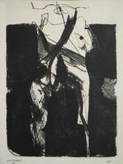 Es una pintura de acción en la que el soporte no se limita a jugar un papel pasivo, por el contrario, la aplicación de ‘papier colle’ permite la manipulación plástica de la tipografía industrial. El gesto, un sinuoso trazo de colores planos, crea un ritmo de masas y luces que se ve enriquecido con la aplicación de grafismos realizados con lápices de colores.