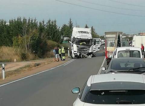 Vuelca en Celada de la Vega un camión de mercancías peligrosas
