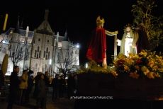 Con las imágenes de la Soledad, San Juan y  el Nazareno, obras del artista astorgano López a las que en los últimos tiempos se ha incorporado el titular de la cofradía, un crucificado del siglo XVII, se celebró, entrada ya la noche y con abundante asistencia de valuros, la procesión del Jueves Santo, organizada por la antigua Cofradía de la Santa Cruz. Como viene siendo habitual, la procesión recorrió las calles del pueblo en un circuito tortuoso, orando en cada estación, para retornar a la iglesia.
