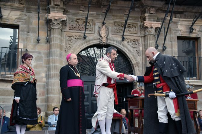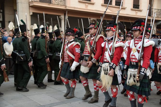 Astorga retrocede este fin de semana a los últimos días del año 1808 cuando el general británico y el militar español coinciden en la ciudad e intercambian pareceres sobre cómo ordenar la retirada ante el avance del ejército galo. De este encuentro, dieron buena cuenta los actores del grupo Mixticius quienes en la tarde de este viernes representaron en la Plaza Mayor los dilemas de los dos militares, mientras las tropas españolas diezmadas por el hambre y el frío pasan la noche en el campamento de los aliados.