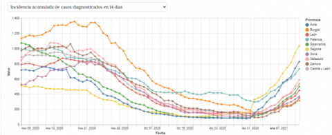 Por encima de la barrera de los 200 nuevos infectados en la última jornada se encuentran también las provincias de Salamanca, con 282, y Segovia, con 229, con un acumulado de casos confirmados de 20.785 y 10.325, en cada caso.
