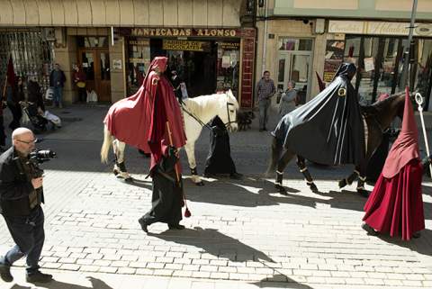 Al mediodía de este Jueves Santo, la Cofradía del Bendito Cristo de los Afligidos convocaba a caballo para el Sermón de las Siete Palabras y a la procesión que sale a las 11,15 horas de mañana desde San Andrés.