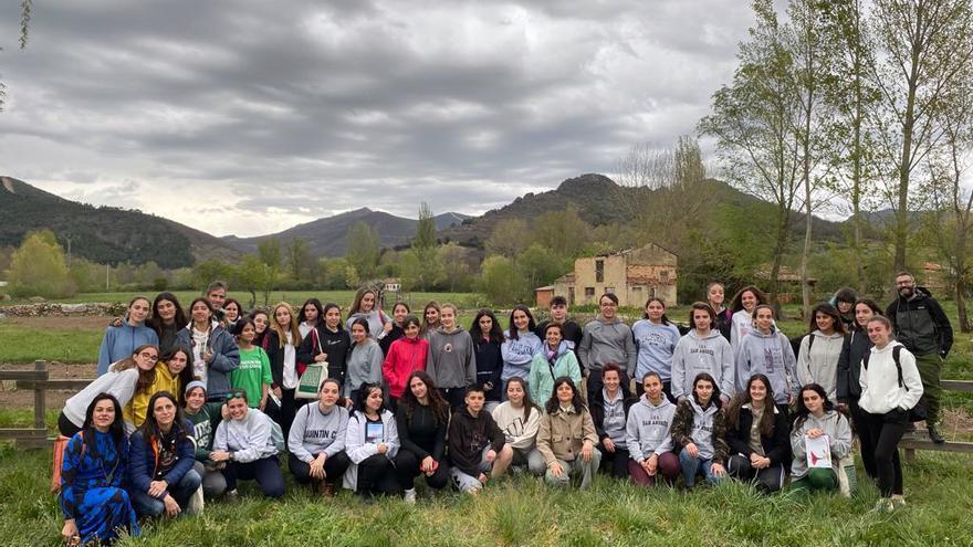 La mañana del viernes se levantó soleada y un autobús trasladó a alumnas, alumnos y profesorado a la ruta de senderismo con inicio en Rucayo y fin en Utrero. La felicidad de pasear lentamente, divisar las montañas y un pequeño mar que empezaba a alborotarse debido al vendaval que quiso apuntarse al evento se reflejaba en las sonrisas de alumnas, alumnos y profesorado que vieron recompensado su esfuerzo. “Puedes explicar en un aula muchos conceptos con palabras, dibujos, ejercicios o con la ayuda de un encerado, lo que quieras, pero hay cosas que solo llegan pisando el terreno, viendo las rocas minerales, y esto fue lo que nos empujó a llevar a cabo esta aventura”, explica Inés Fuertes.