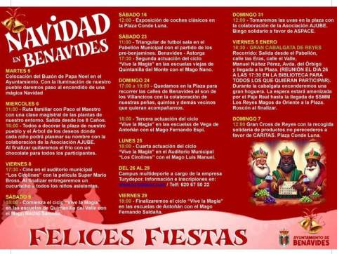 En el programa hay fechas importantes para los niños y niñas del municipio con la llegada del Cartero Real en la tarde del 30 de diciembre y la cabalgata de los Reyes Magos del 5 de enero.