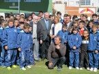 En el campo de La Eragudina le esperaban cientos de astorganos que han vibrado con la presencia de del Bosque. En declaraciones a los numerosos medios de comunicación que cubrieron el evento, Vicente del Bosque aseguraba que "estamos obligados a devolver toda la simpatía que nos dan y más cuando se trata del fútbol base", porque como destacó, "los éxitos en la selección absoluta vienen de una buena estructura en el fútbol base, de unos buenos profesores y de unos buenos educadores". Instantes después, acompañado por la presidenta del Atlético Astorga, Sagrario González, se dirigía al centro del campo, donde le esperaban los equipos, las escueles y los clubes deportivos de la ciudad, para hacerse la foto.