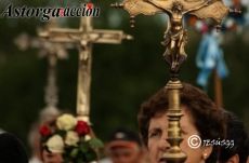 Numerosos autocares llenaron la campa habilitada para su estacionamiento, autocares que venían repletos de personal ávido de ver el desfile de pendones y carros engalanados, que arrancando del aparcamiento de un centro comercial situado en el término de San Andrés del Rabanedo a las diez de la mañana, llegaron a las doce y media para asistir a la celebración eucarística oficiada por el obispo de León en la explanada del santuario de la Virgen del Camino.