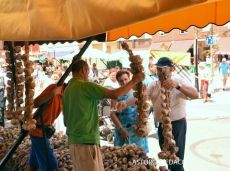 14,00 h.- En el patio del Ayuntamiento: - Exhibición de enristrado de ajos. - Fallo de los Concursos de ristras, a la calidad y cabezas de ajo.